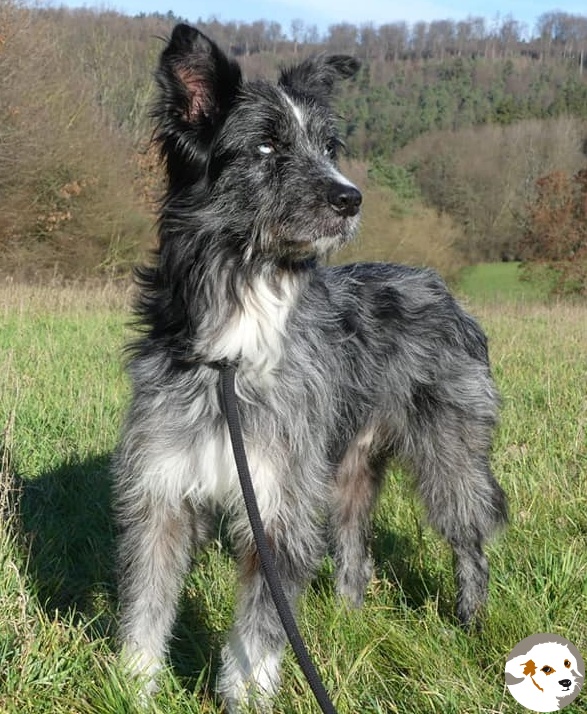 Der bildschöne Blue zeigte sich schon in Portugal als offener freundlicher, agiler Rüde, der Menschen und anderen Hunden gegenüber sehr aufgeschlossen ist. Diesen Eindruck kann man in der Pension nur bestätigen. Er versucht stets alles richtig zu machen und zu gefallen. Hat aber auch gegen ausgiebige Kuscheleinheiten auf der Couch nichts einzuwenden. Blue ist sehr intelligent und lernt sehr schnell und man muss aufpassen, ihn nicht zu überfordern, da er sich einem ständig anbietet und rassetypisch nicht unbedingt seine Grenzen nicht kennt. Er versteht sich hervorragend mit anderen Hunden und liebt es auch mit ihnen zusammen zu sein. Im Auto ist er ein entspannter Mitfahrer und bleibt sicherlich nach einer angemessenen Eingewöhnungszeit auch stundenweise alleine. Größere Kinder sind kein Thema, da er auch ihnen sehr freundlich und aufgeschlossen begegnet. Bei kleinen Kindern zeigt er ein deutliches Meideverhalten. Erfahrungen mit Katzen liegen uns leider nicht vor. Aktuell ist er draußen noch etwas stürmisch an der Leine und recht aufgeregt, durch all der neuen Reize, lässt sich aber gut durch Ansprache lenken. Insgesamt braucht er aber souveräne und Hütehund erfahrene Menschen, die ihn langsam und ruhig an neue Reize gewöhnen und den auch stressanfälligen, sensiblen Hund nicht gleich überfordern.